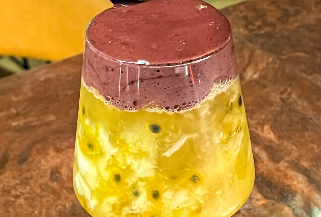 Peixe regional fresco com tempero especial do Chef, finalizado com espuma de pitaya e Pintado Pop.