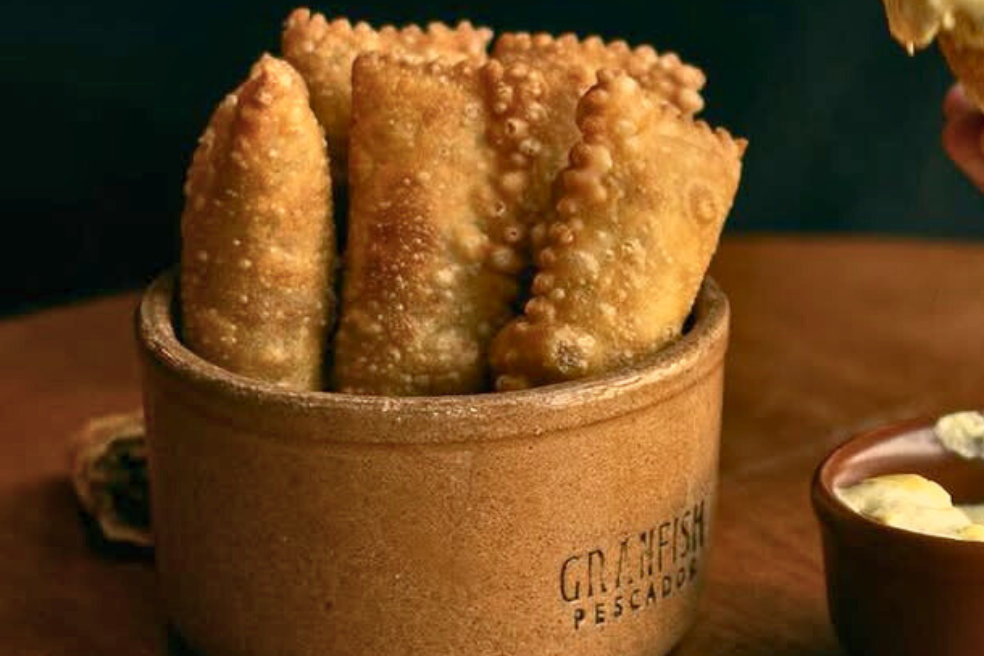 Croquete preparado com SALMÃO, textura deliciosa e crocante por fora. Finalizado com maionese de limão siciliano.